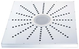 очень мощное устройство, изготовленное в форме потолочной плитки 60х60 см; скрытое использование, монтаж прямо в потолок конференц-зала или офиса; генерирует очень мощную помеху благодаря наличию 120 УЗ излучателей; дополнительная акустическая помеха может исходить от встроенного динамика; защищает окна от удаленного съема информации лазерными микрофонами; комплектуется выносным динамиком для защиты пространства за потолком; глушит передатчики и жучки с помощью мощного частотного подавителя; богатая комплектация включает все необходимое, включая проводной пульт ДУ.